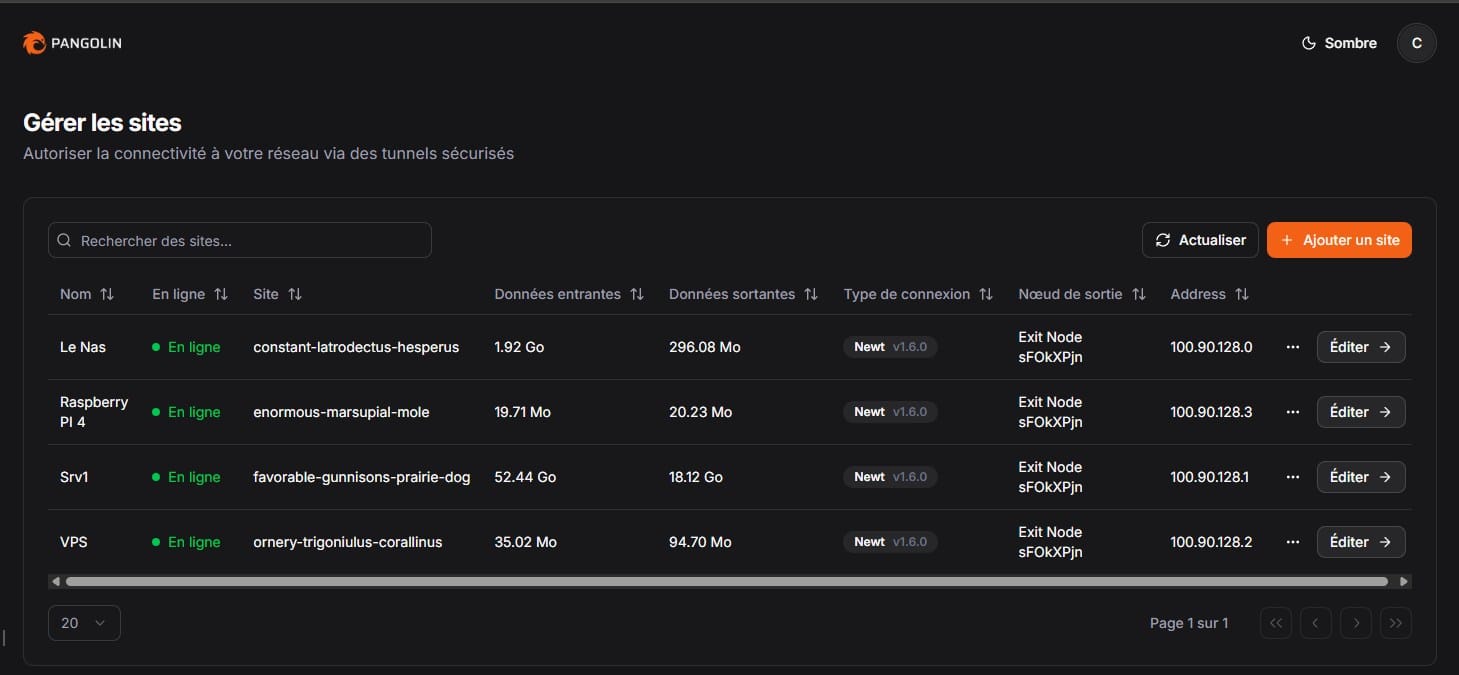 Pangolin (Application de Gestion & Serveur Central) Le hub central pour la gestion de l'application. Pangolin inclut :