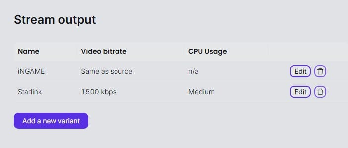 - Les versions de secours : Dans l'administration d'Owncast, va dans les réglages vidéo.